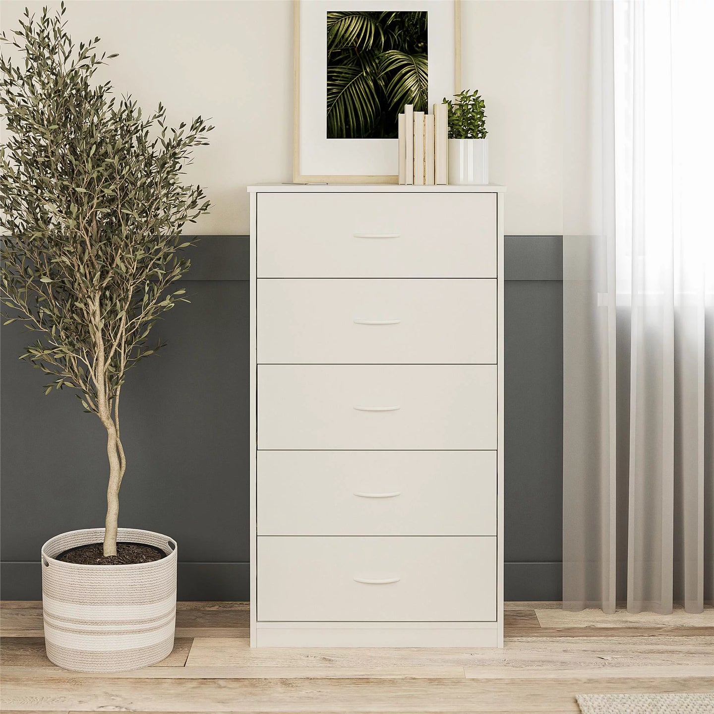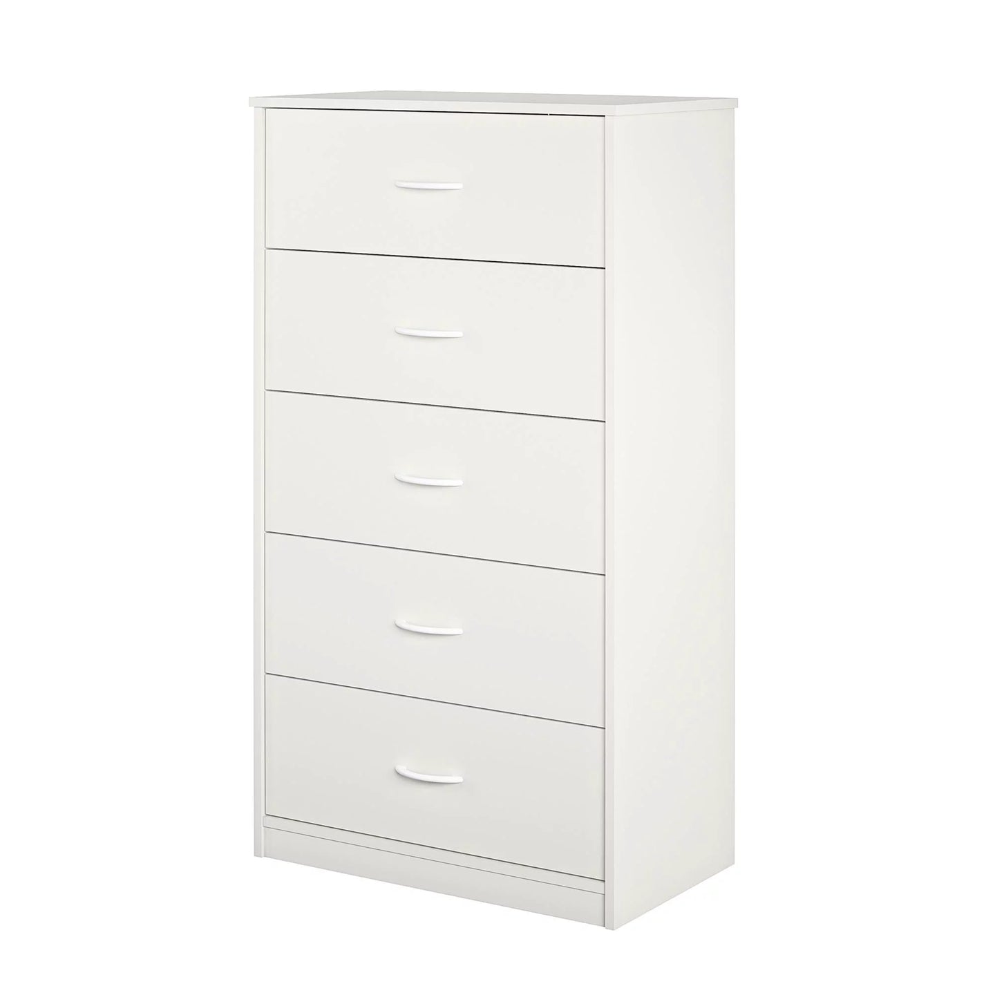 A Wall anchor kit is included to safely secure the Dresser to the wall and prevent tipping injuriesGive your bedroom or guest room additional storage with the Classic 5 Drawer DresserMade from laminated particleboard, the clean white finish gives the Dresser a classic look