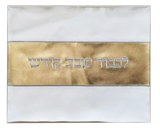 Faux Leather Challah Cover White & Gold