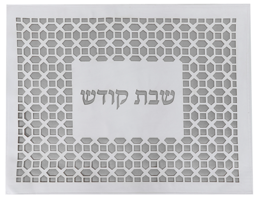 Leather Look Silver & White Design Challah Cover Laser Cut