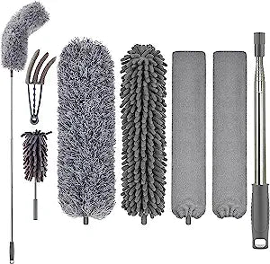 - 🏠🧹【Microfiber Dusters for Cleaning】Our duster cleaning kit has a new upgraded 2.5m telescopic pole, a bendable microfiber duster head, a crevice brush, two flat brush dust cloths, and a chenille duster head. A diverse cleaning kit can handle different cleaning scenarios. The fluffy microfiber and soft rubber on the top ensure that the surface of the sofa, furniture, or wall will not be scratched during the cleaning process.