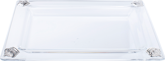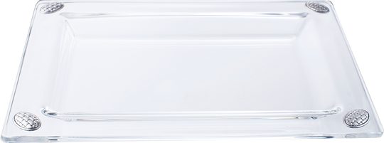 Glass Tray with 4 silver pcs brick Design 9 1/2x7"