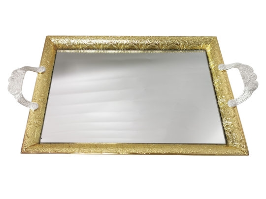 Mirror tray Gold with Silver Handles
