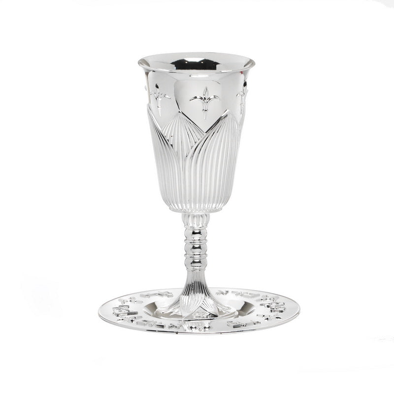 Light Kiddush Cup & Tray - Silver Plated Lily Design