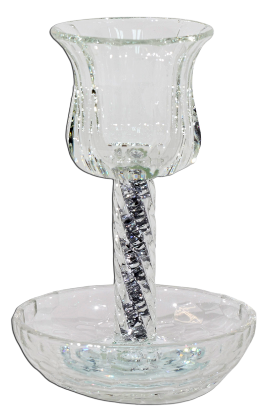 Crystal Kiddush Cup - Silver Filling with Spiral Leg - 6" Cup 4.5" Tray