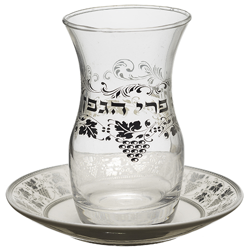 Glass Kiddush Cup 4" With Ceramic Saucer 4.2 oz