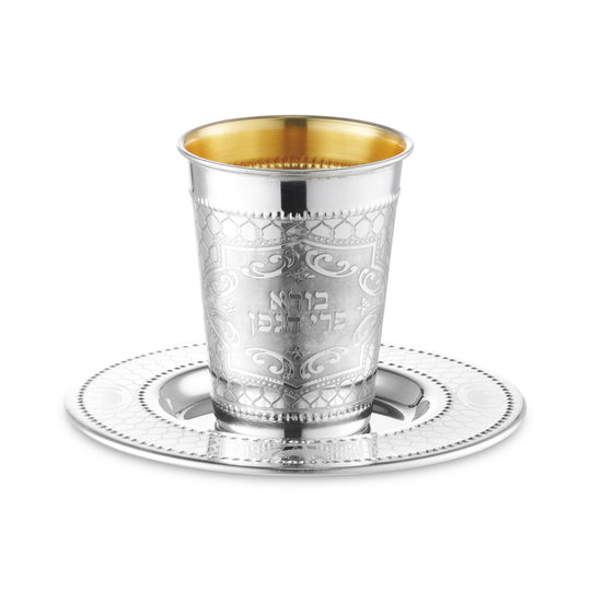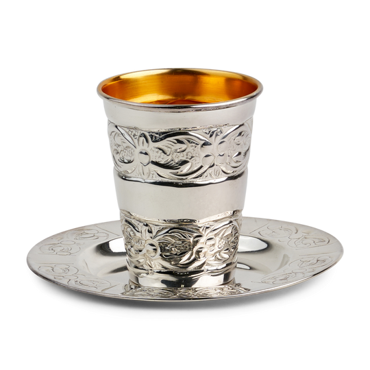 Silver Kiddush Cup Set Cup 3.5" Tray 5.5"