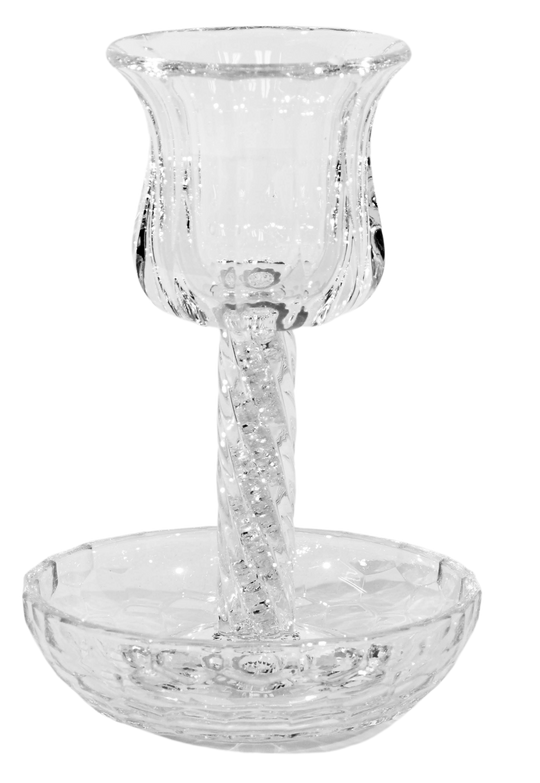 Crystal Kiddush Cup - White Filling with Spiral Leg - 6" Cup 4.5" Tray