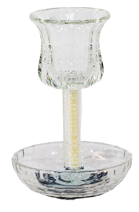Crystal Kiddush Cup - White Pearl Filling with Square Leg - 6" Cup 4.5" Tray