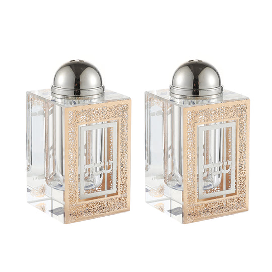 Crystal Salt & Pepper Set Gold Plate 3"HX1.5"