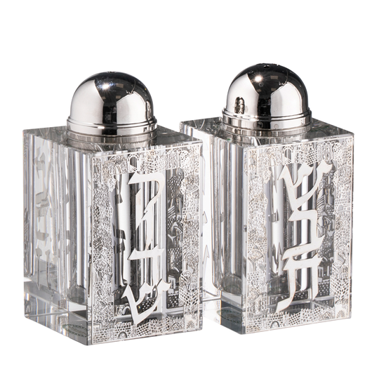 Crystal Salt & Pepper Set Silver Jerusalem 3"HX1.5"