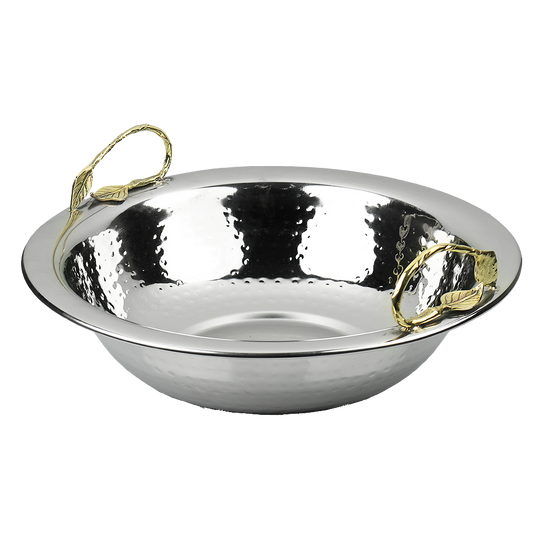 Stainless Steel Hammered Bowl With Bronze handles 14"