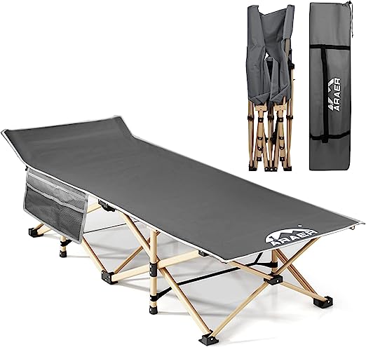 - 【Slim But Comfy】: Just because it’s foldable doesn’t mean it can’t be comfortable! The ARAER folding camping cot, features a slightly tilted end made with polyester fiber so it’s comfy for sleeping even without a pillow.