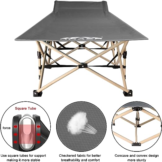 - 【DURABLE & COMFORTABLE】Breathable 600D double layer oxford fabric. Sleep comfortable without pillow as the angle of the top flanges. Fits most people up to 6'8".